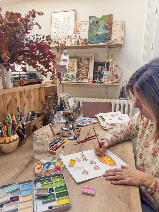 Je peins et je crée des livres pour le créatif rêveur, le naturaliste amateur, l’amoureux des ambiances cosy, l’observateur du moment présent, l’aventurier du quotidien qui cherche l’harmonie intérieure dans ce monde effréné et l’enfant en chacun de nous.